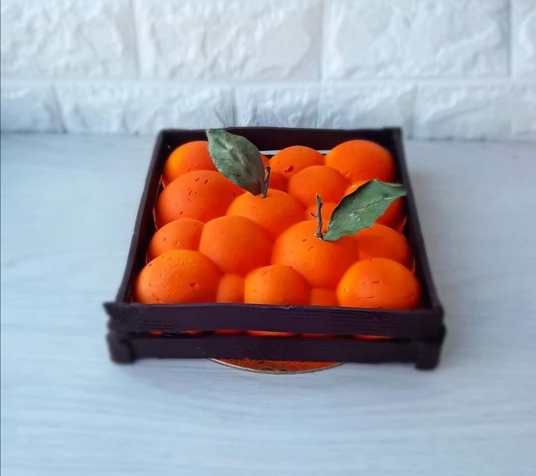 Сладкая, вкусная, нежная муссовая "обманочка" в виде ящика мандарин. С первого взгляда и не понять подвоха!