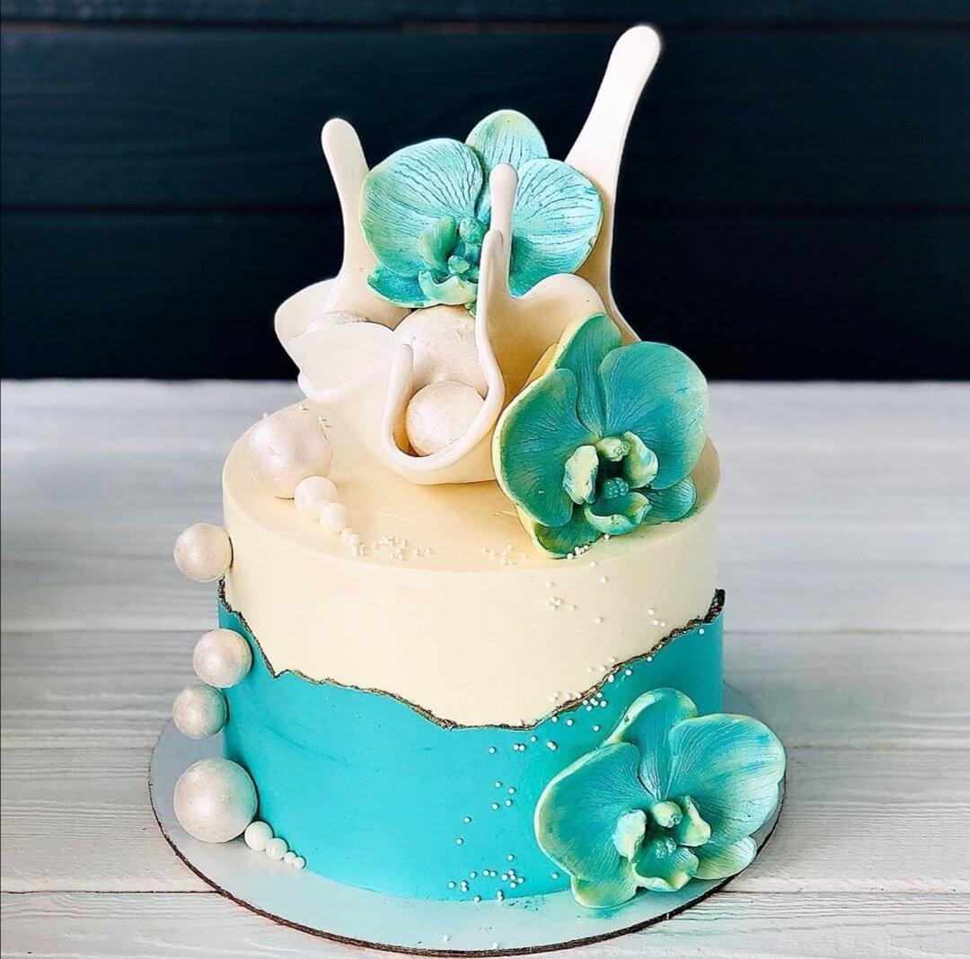Милейший сладкий тортик, украшенный голубыми орхидеями, придется по душе девушкам, обожающим эти цветы...